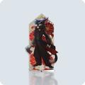 The blood seems to just drip from Mordecai's hatchet in this stunning standee designed by Salem Pullen, Fable Siegel, and Lackadaisy creator, Tracy J. Butler.